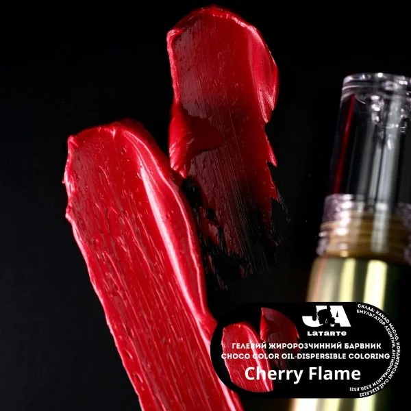 Cherry Flame - це яскравий, вибуховий червоно-вишневий відтінок, створений для ефектних акцентів у кондитерських виробах. Інтенсивний, чистий та гладкий колір дозволяє отримати «фірмовий» вигляд шоколаду, кремів і глазурей, не втрачаючи насиченості навіть після охолодження чи заморожування.