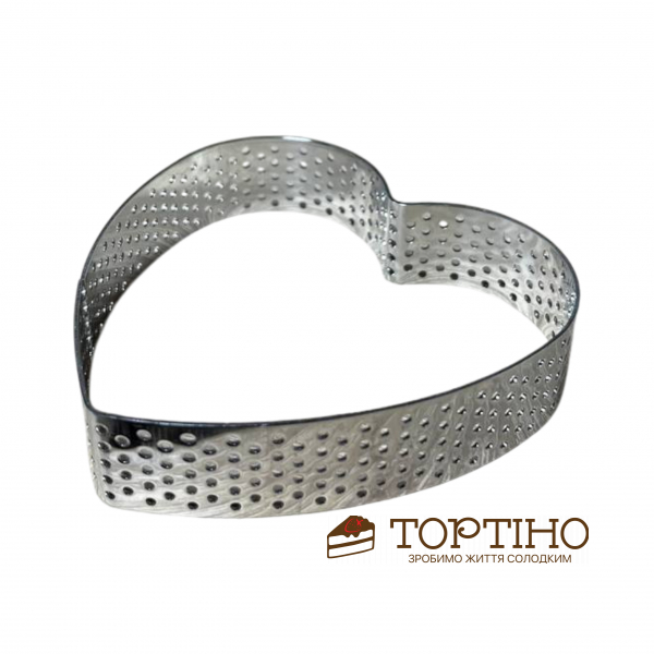 Перфорована форма “Серце” з нержавіючої сталі 1 мм для випічки виробів з пісочного тіста (тартів, кішів, пирогів, галет). Випечені за допомогою цієї металевої форми вироби готуватимуться швидше, а пропікатися краще. Випічка буде виходити рівна і красива, вийматися легко і не розкришиться – бо перфорація забезпечує циркуляцію повітря і видаляє зайву вологу при випічці. Зменшує ризик підгорання виробу і забезпечує його однорідну випічку з усіх боків.