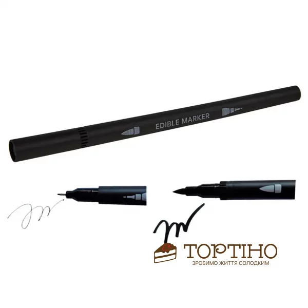 Харчовий двобічний маркер-фломастер, чорний — універсальний інструмент для творчого декору кондитерських виробів.