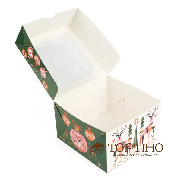 Головна - Пакувальні матеріали - Картонна упаковка - Коробки для тортів - Коробка для Бенто-торта Новорічні олені, 17*17*10,5 см