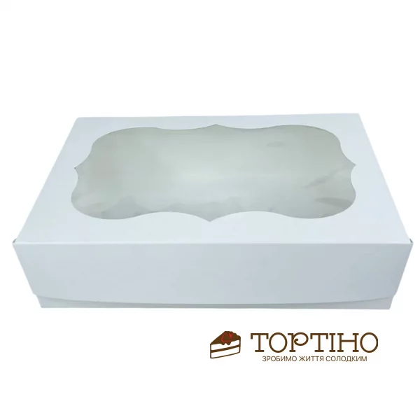 Чудова коробка для еклерів, зефіру, печива чи подарунків  з целюлозного картону високої якості з віконечком ПВХ.