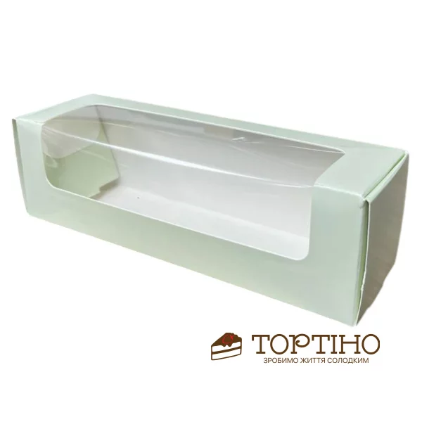 Коробка для макаронс з панорамним віконечком Зелена, 20*6*6 см