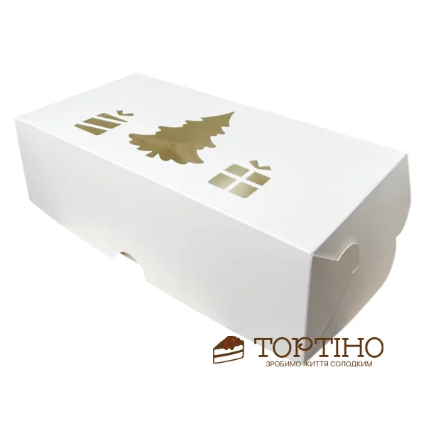 Головна - Пакувальні матеріали - Картонна упаковка - Коробки для еклерів та зефіру, тістечок - Коробка універсальна Біла Ялинка (Штоллен), 15*30*9 см