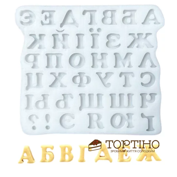 Силіконовий молд з безпечного харчового силікону дозволить зробити їстівні букви з мастики, шоколаду, карамелі та ін.