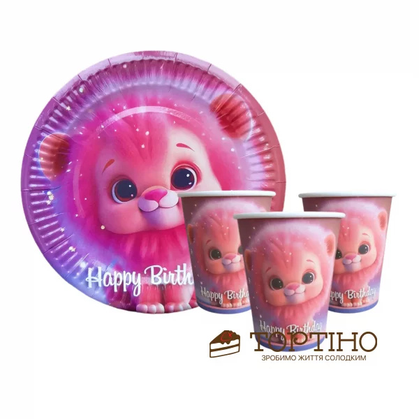 Головна - Все для свята - Свічки, серветки, дитячий посуд - Дитячий посуд - Набір для святкування "Левеня Happy Birthday"