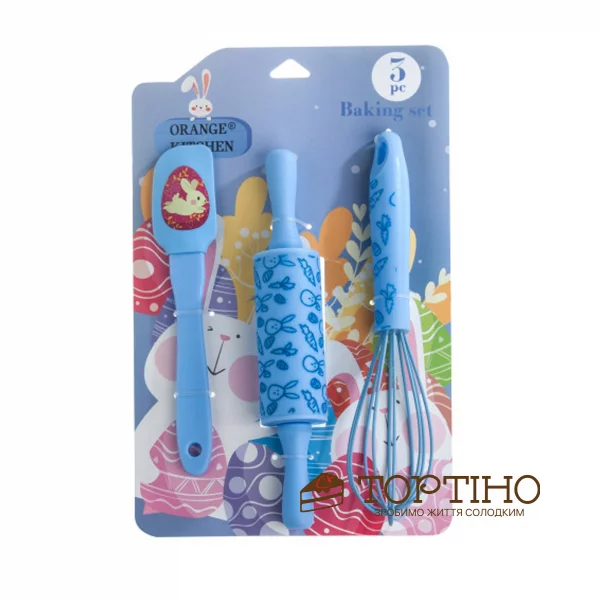 Головна - Все для свята - Великдень - Форми та інвентар для випікання паски - Набір лопатка+качалка+вінчик (блакитний)