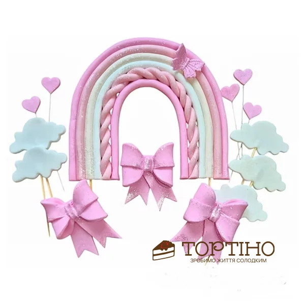 Головна - Декор - Цукрові прикраси та фігурки з мастики - Дівчача тематика - Набір "Веселка рожева з бантиками", ТМ Іриска
