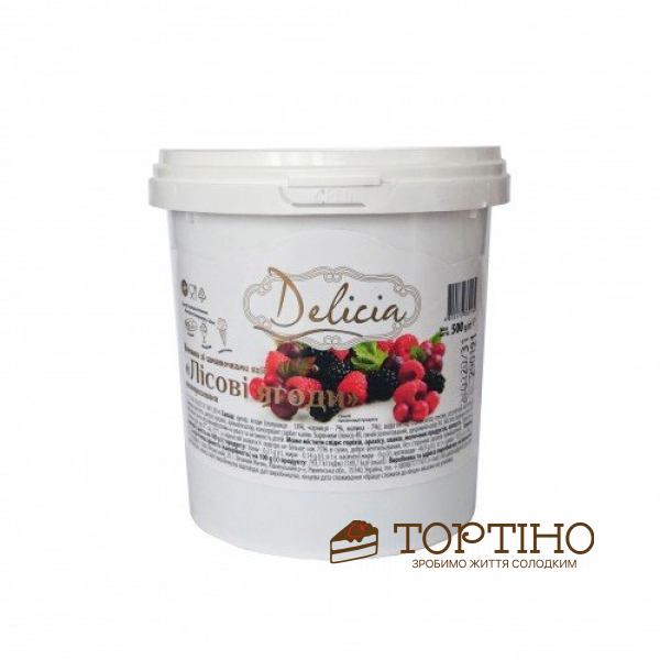 Пастеризована начинка зі шматочками ягід Delicia використовуються для оформлення готових кондитерських виробів.