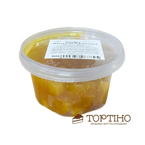 Головна - Сировина та інгредієнти - Фруктові та смакові наповнювачі - Фруктові наповнювачі - Начинка термостабільна Манго кубики Топфіл ТМ ТОРТІНО, 150 г