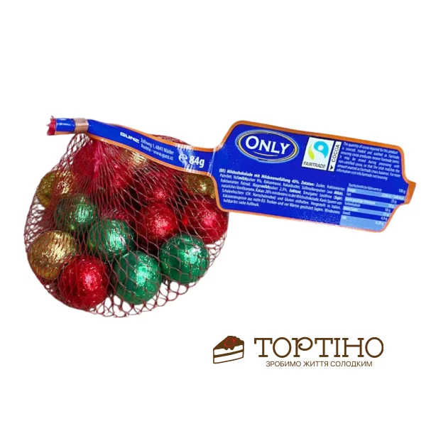Головна - Сировина та інгредієнти - Солодощі та напої - Солодощі - Новорічні кульки з молочного шоколаду TM "Only", 84 г
