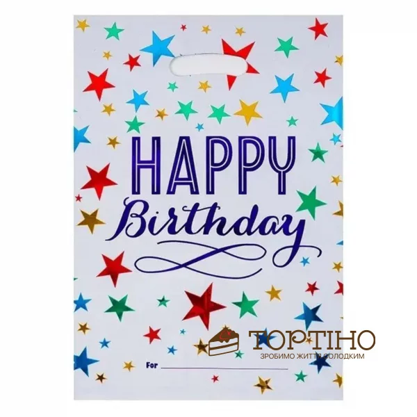 Головна - Пакувальні матеріали - Додаткове пакування - Пакети - Пакет подарунковий Happy Birthday (білий), 10 шт/уп