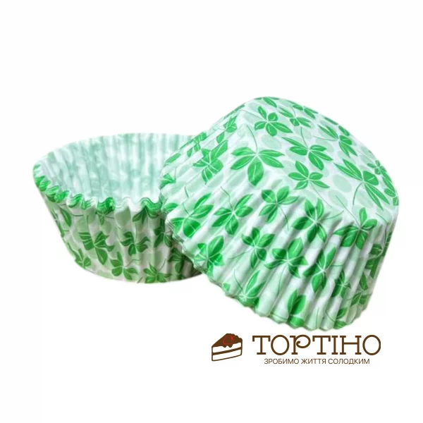 Головна - Інвентар - Форми для випічки - Паперові форми - Паперові форми для кексів d50, h30 “Зелені листочки”, 50 шт