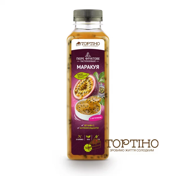 Головна - Сировина та інгредієнти - ТМ "Тортіно" - Пюре - Пюре Маракуя пастеризоване з кісточками ТМ Тортіно, 0,5кг