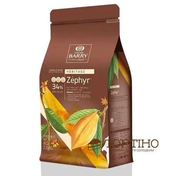Главная - Сырье и ингредиенты - Оптовые товары - Натуральний белый шоколад в дропсах Cacao Barry Zephyr 34% (Бельгия), 5 кг