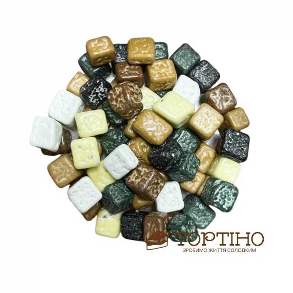 Драже в виде мелких камешков из молочного шоколада с хрустящим сахарным покрытием. Используется для украшения кондитерских изделий, мороженого.