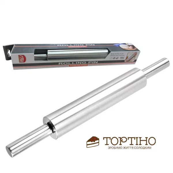 Качалка металлическая – базовый инструмент. Скалка состоит из металлической вращающейся рабочей части и металлических ручек. Предназначена скалка для раскатки мастики, марципана, теста и любой другой кондитерской массы. Изготовлен из нержавеющей стали.