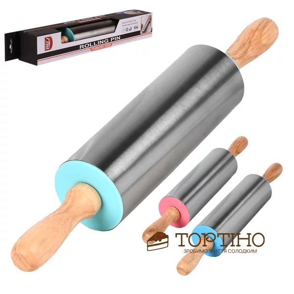Качалка металлическая с деревянными ручками – базовый инструмент. Скалка состоит из металлической вращающейся рабочей части и деревянных ручек. Предназначена скалка для раскатки мастики, марципана, теста и любой другой кондитерской массы. Изготовлен из нержавеющей стали.