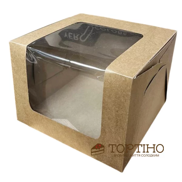 Главная - Упаковочные материалы - Картонная упаковка - Коробки для тортов - Коробка для торта КРАФТ с панорамным окном, 20*20*15 см