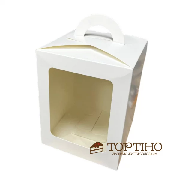 Главная - Упаковочные материалы - Картонная упаковка - Коробки для капкейков - Коробка на паску 16,5 16,5 * 21 см с окошечком Белая