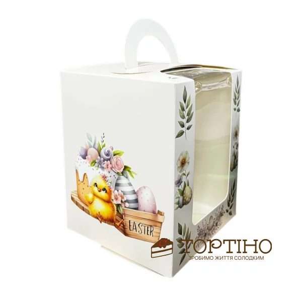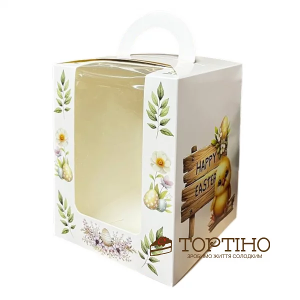 Коробка на кулич БЕЖЬ Курчатко, 16*16*20 см
