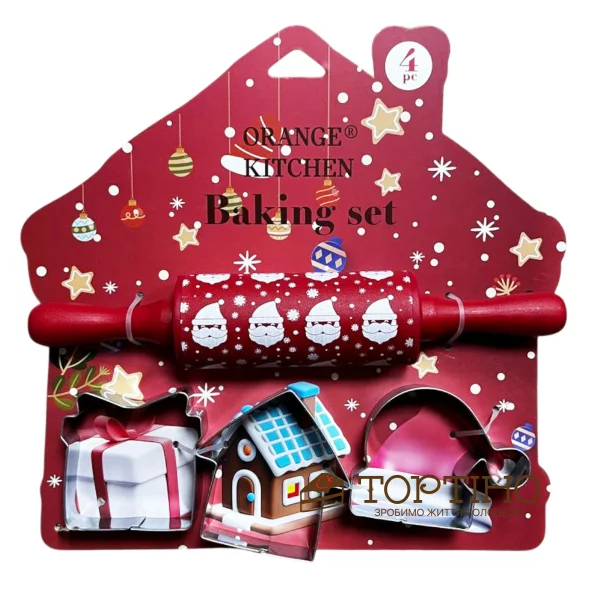 Главная - Инвентарь - Формы для выпечки - Металлические формы - Наборы форм - Набор Качалка+металлические вырубки 3 шт, Красный