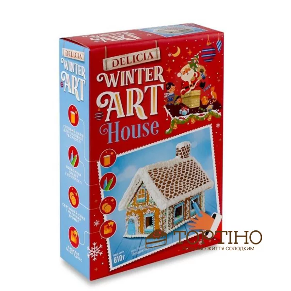 Рецепт сказки - простой, необходимо: хорошее настроение, немного времени и набор пряничных коржей от ТМ "Делиция". В нем вы найдете все то, что понадобится для создания пряничной хатиночкы: лепешки различной формы - для основы, сахарную пудру - для приготовления крема, чтобы зафиксировать и украсить «избушку» (нужно только добавить белок сырого яйца и взбить крем), а также кондитерскую присыпку в виде милых снежинок - для декорирования. Кроме того, к набору прилагается кондитерский мешочек, чтобы работа над созданием хатиночкы была легкой и приятной.