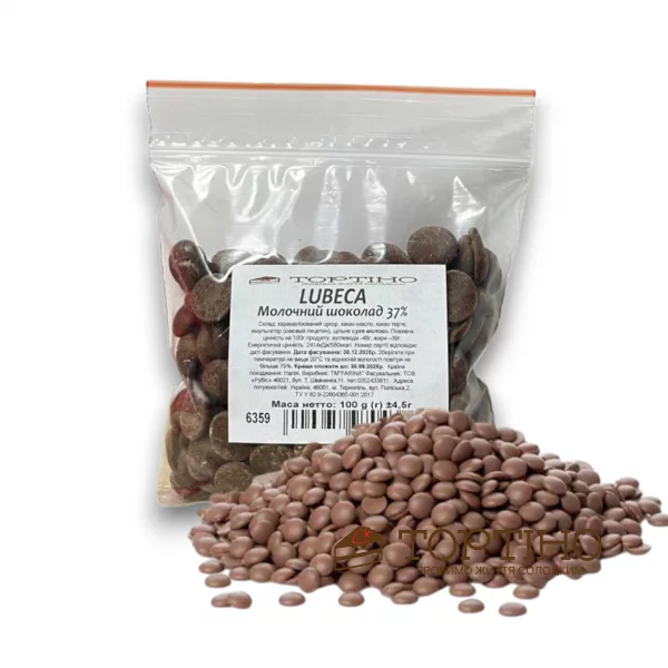 Натуральный молочный шоколад 37% GHANA Lubeca, 100 г
