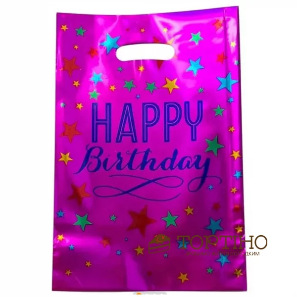 Пакет подарочный Happy Birthday (фуксия), 10 шт/уп