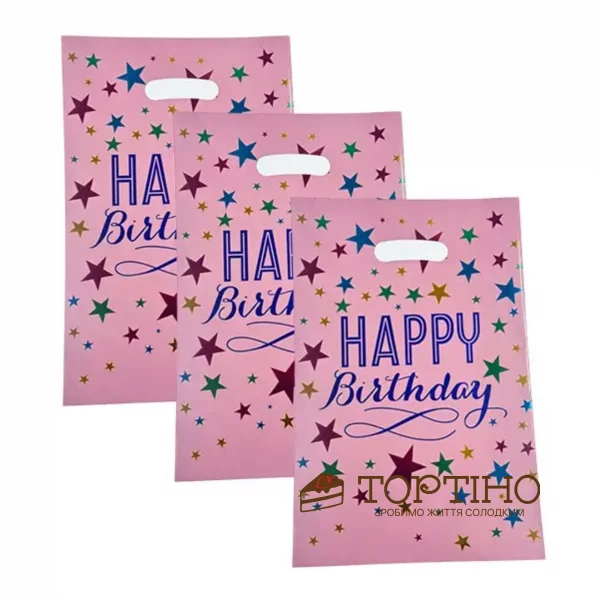 Пакет подарочный Happy Birthday (розовый), 10шт/уп