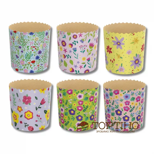 Главная - Всё для праздника - Пасха - Формы и инвентарь для выпечки пасхи - Бумажные формы для кулича - Бумажная форма для кулича 500 г "Микс цветочный" (серия 2), 5 шт