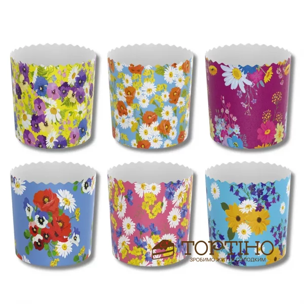 Бумажная форма для кулича 500 г "Полевые цветы" (серия 11), 5 шт