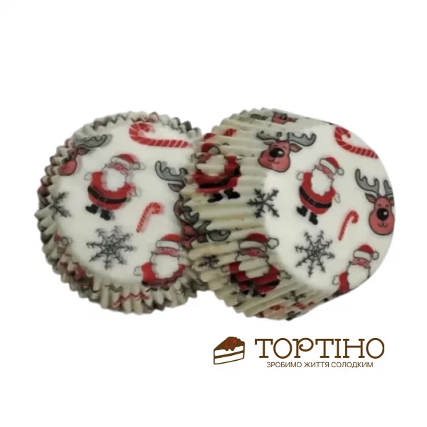 Бумажные формы для кексов d50, h30 "Санта с оленем", 50 шт