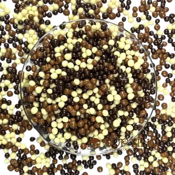 Хрустящие хлопья для декора в белом, молочном и черном шоколаде.
