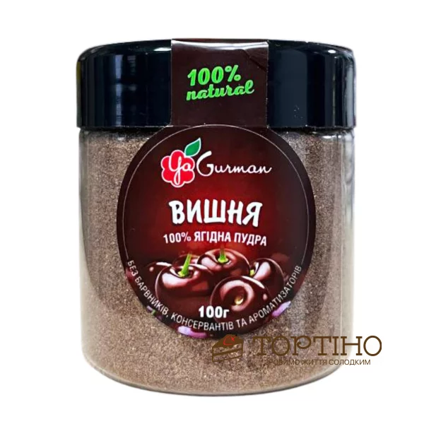 Натуральная пудра вишни. Без добавления консервантов, красителей или ароматизаторов. Готова к употреблению или использованию.