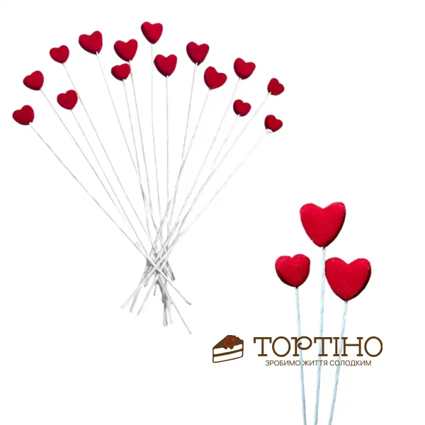 Главная - Декор - Сахарные украшения и фигурки из мастики - Сердечка - Сердечки на дротике (красные), 15шт/уп