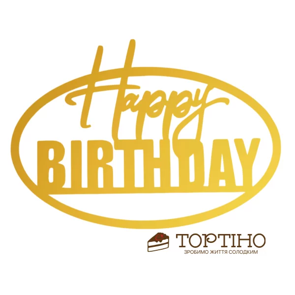 Главная - Всё для праздника - Топер для кондитерских изделий - Топеры акриловые - Топер акриловый боковой Happy Birthday овал (золото)