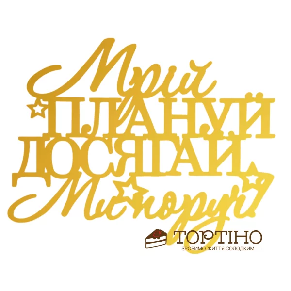 Главная - Всё для праздника - Топер для кондитерских изделий - Топеры акриловые - Теперь акриловый боковой Мечты Планируй Достигай Мы рядом! (золото)