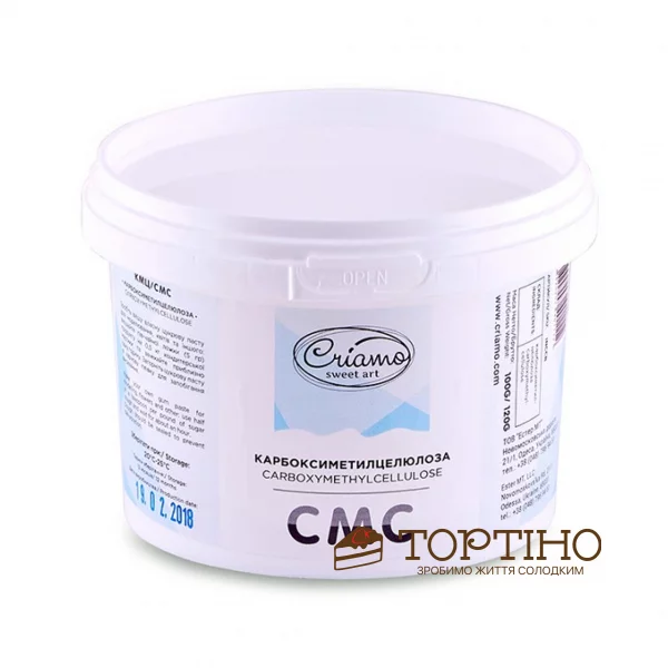 СМС ( Carboxy Methyl Cellulose ) - це загущувач високої концентрації. СМС хороший гелеутворюючий, загущувач. Без смаку, не впливає на смак інших харчових інгредієнтів. СМС застосовують для створення мастики для ліплення ( квіткової пасти), так само вона вибілює мастику. СМС не містить соди, що впливає на якість мастики. Мастика для ліплення квітів і фігурок : доза загущувача (для квітів - 1 ч.л. на 200-250 г мастики, для фігурок - 1 ч.л. на 400-500 г мастики) Змішується з цукровою пудрою, після додаєте інші інгредієнти. Все ретельно перемішати. Зовнішній вигляд: білий порошок, без запаху і яскравого смаку.