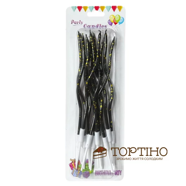 Головна - Все для свята - Свічки, серветки, дитячий посуд - Свічки святкові - Свічки Кольорові - Свічки Коктейльні чорні з золотими краплями 15 см, 12 шт