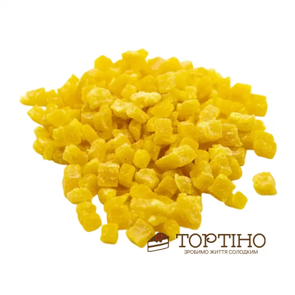 Продукт на натуральний фруктово-ягідній основі  у вигляді кубиків розміром близько 5 мм * 5 мм * 5 мм, пересипаних крохмалем для запобігання їх злипанню.